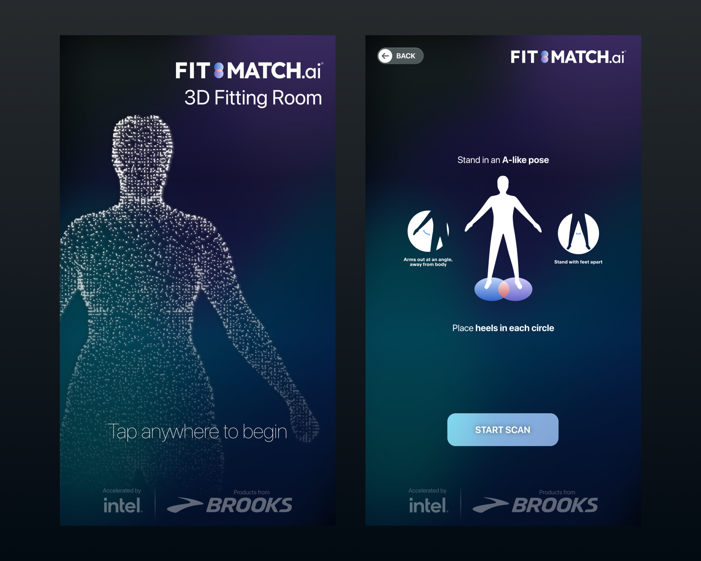 This interface was designed specifically to showcase FitMatch Body Scanning technology at the Intel Innovation 2023 Keynote. During the keynote, CEO, Pat Gelsinger, does a live demo to show off the product. This was one of the most exciting projects I worked on, knowing it would be shown at such a large event, livestreaming to a combined 28K viewers.
